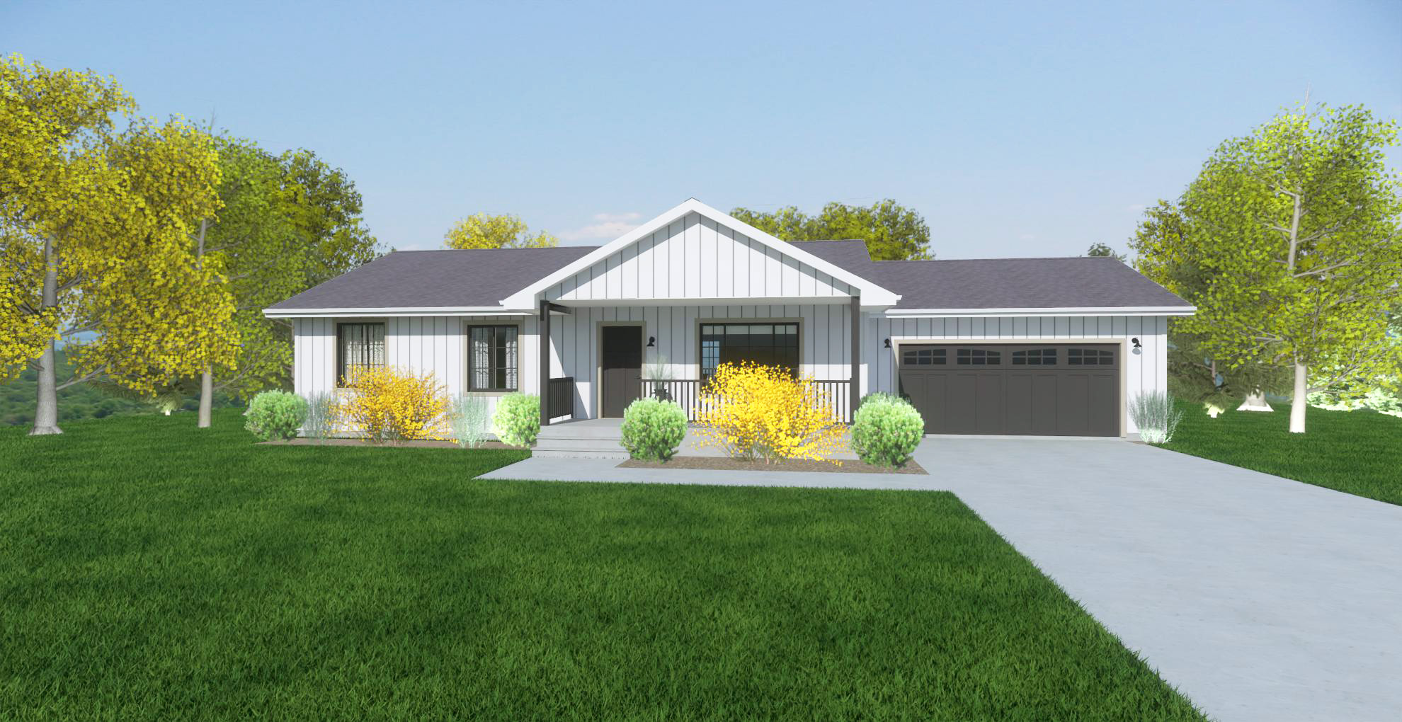 The Abbott is a compact, efficient plan with a low square footage that makes it budget friendly. The Abbott still provides plenty of storage with a large pantry, walk in master closet, and a good sized kitchen. An open living and dining room with a wall separating the kitchen giving the plan a more homey feel.