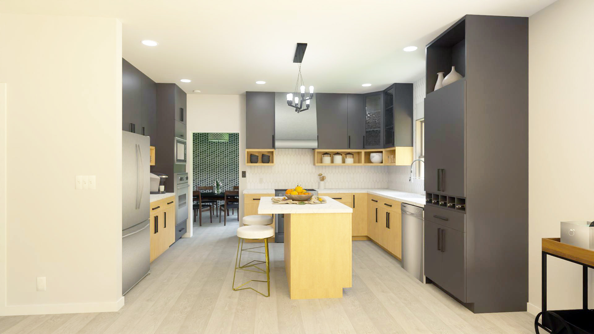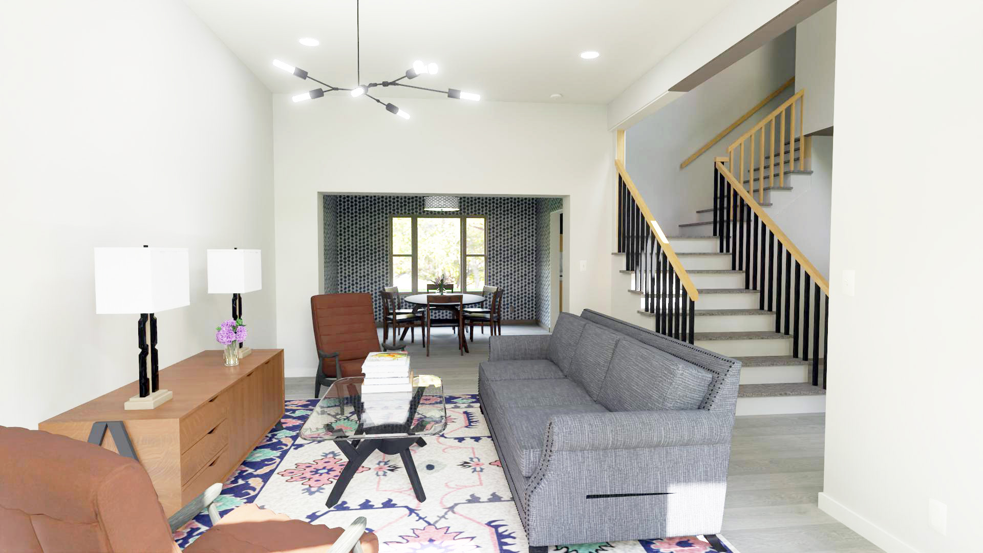The Chamberlain home has great curb appeal with large windows at the front living room. The living and dining rooms have 10’ ceilings and the entry is open to above with an L-shaped staircase giving a grand feel. The main floor is complete with an abundance of space for both formal and informal living.