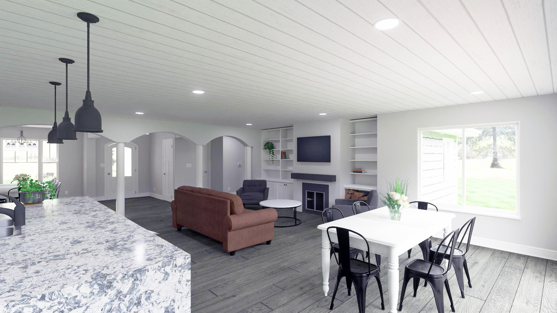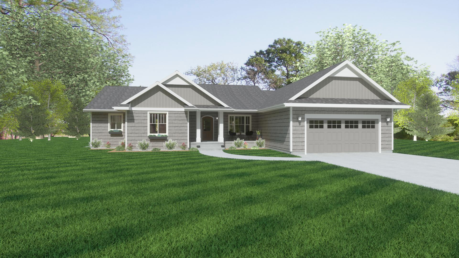 The Kennedy is a large ranch with an optional fourth bedroom or study. The living areas are at the center of the home and are open from the front to the back taking advantage of your great location. The dining room is showcased off the foyer with easy access from the kitchen. The kitchen is 4-sided with an eating bar either off the great room or the nook. The great room has a 9’ sliding patio door to the rear and an area for a fireplace and added cabinetry. The bedrooms are placed at the ends of the home with their own baths for added privacy.