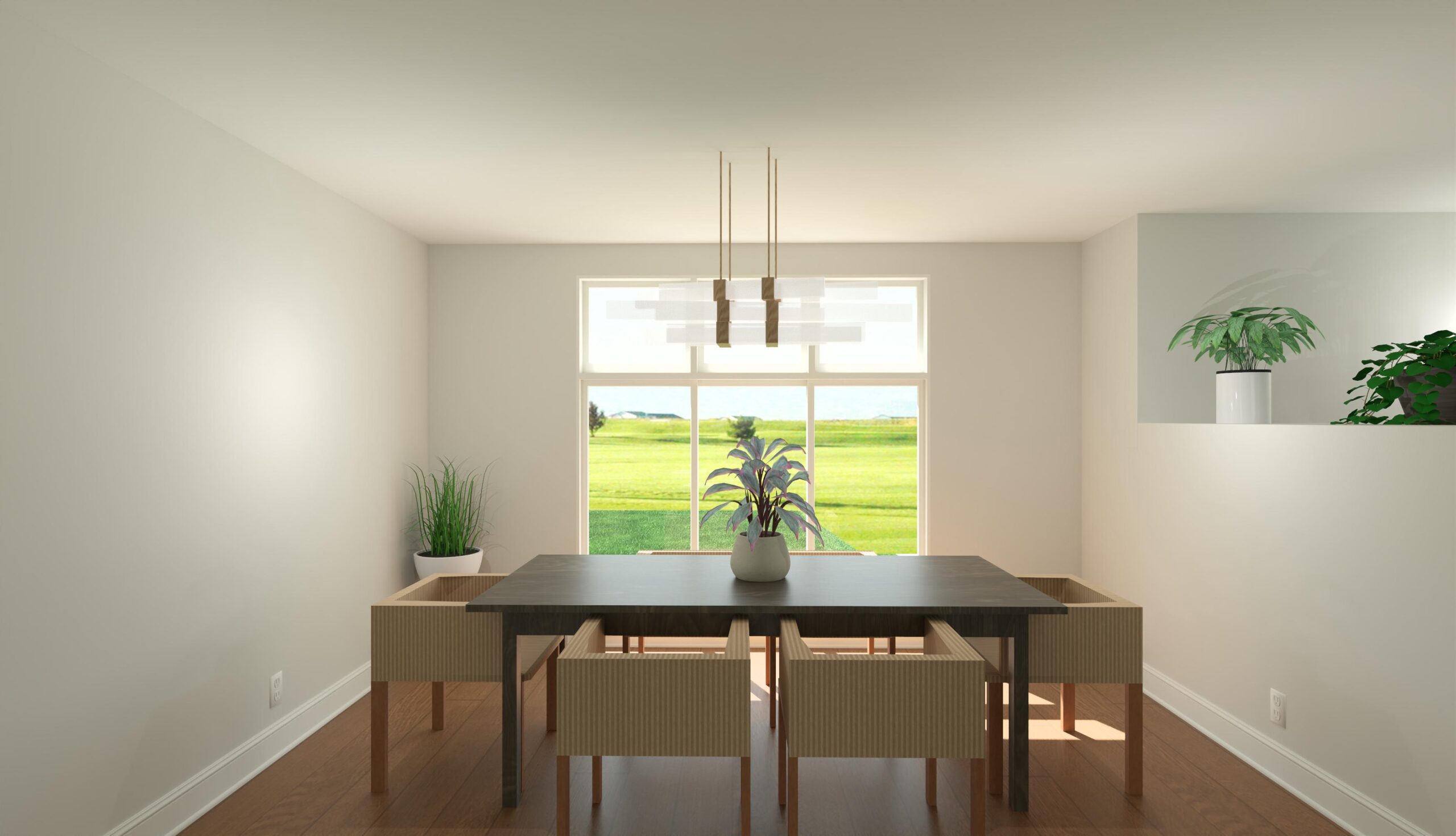 The Madeline features an impressive double gabled roof. Floor length triple windows, and covered front porch add to the charm of this home. An oversized entry and grand staircase greet visitors leading to the open plan. The formal dining room is large enough for an extended table, chairs, and buffet, leaving plenty of room for serving. Careful planning makes this home exciting and affordable to build.