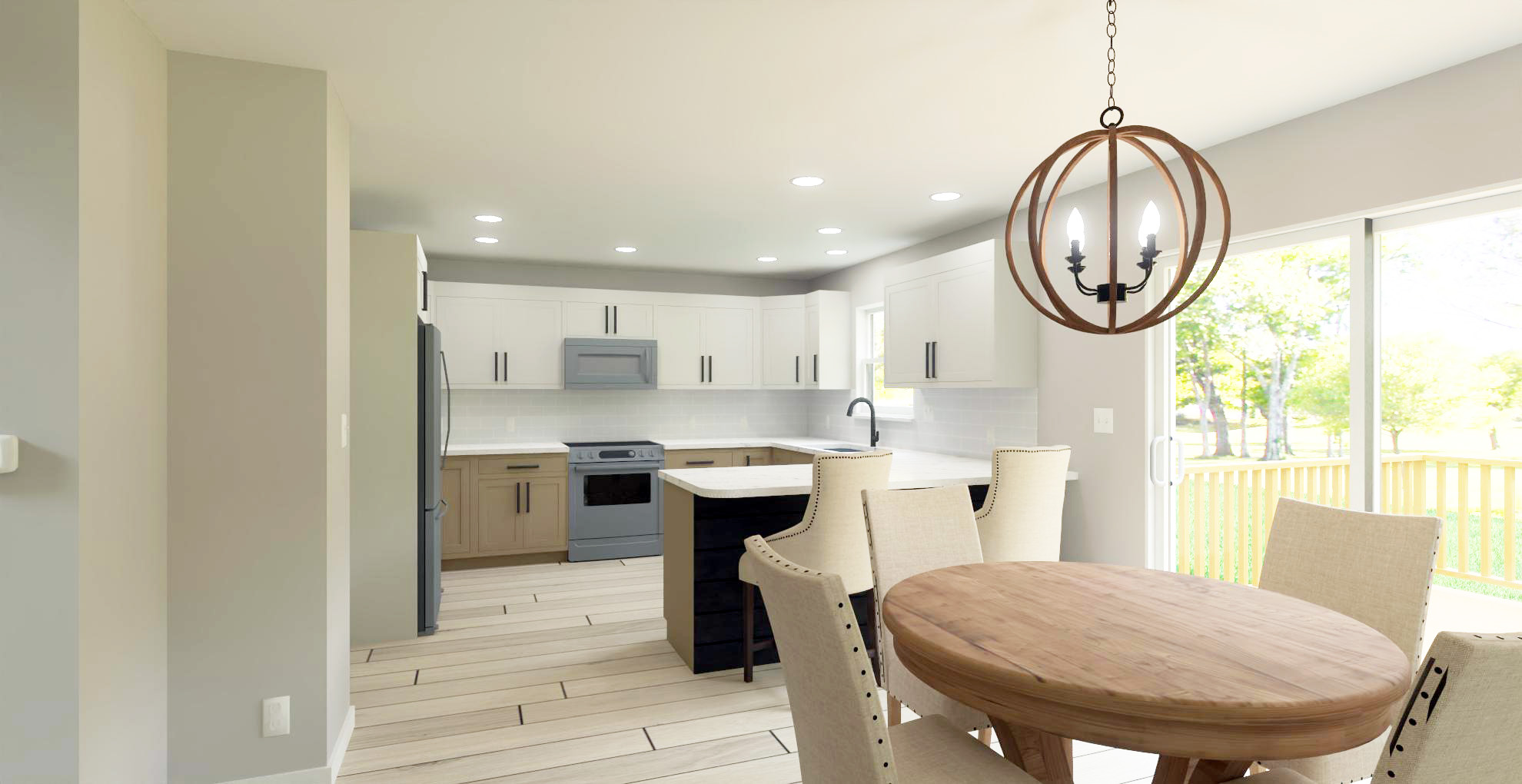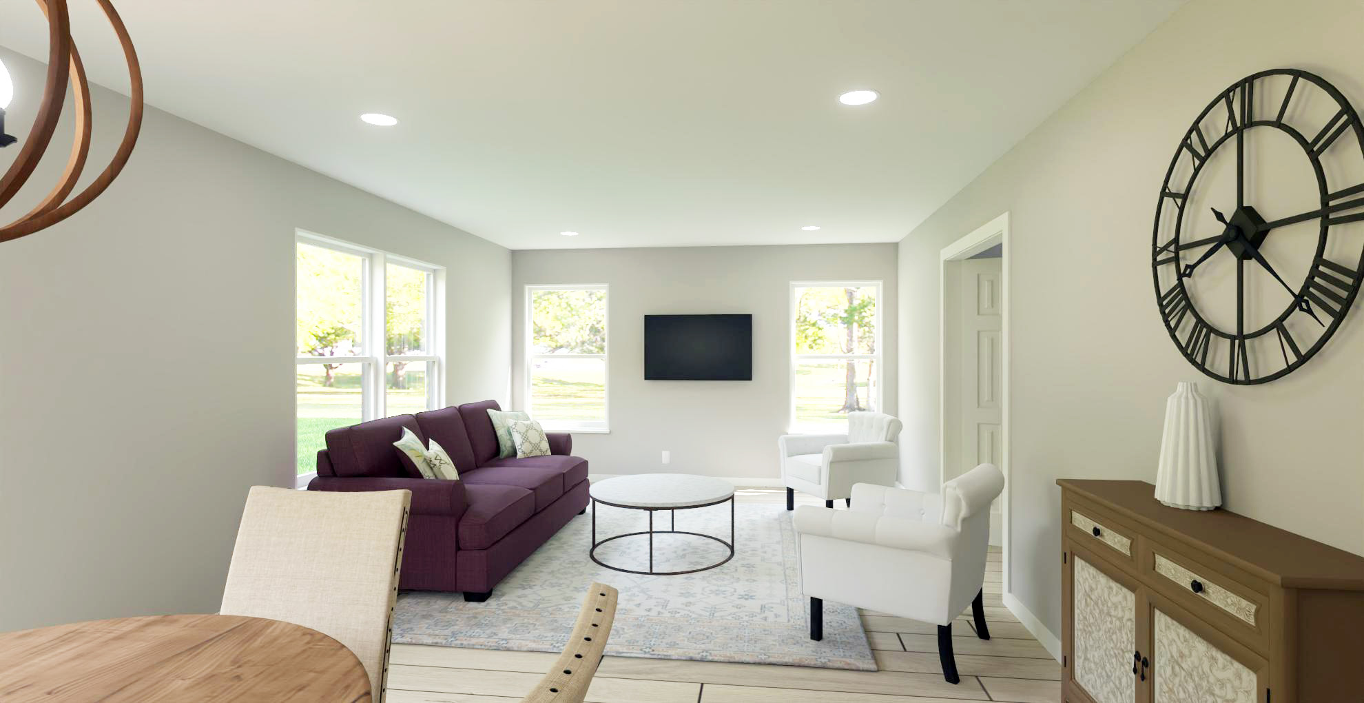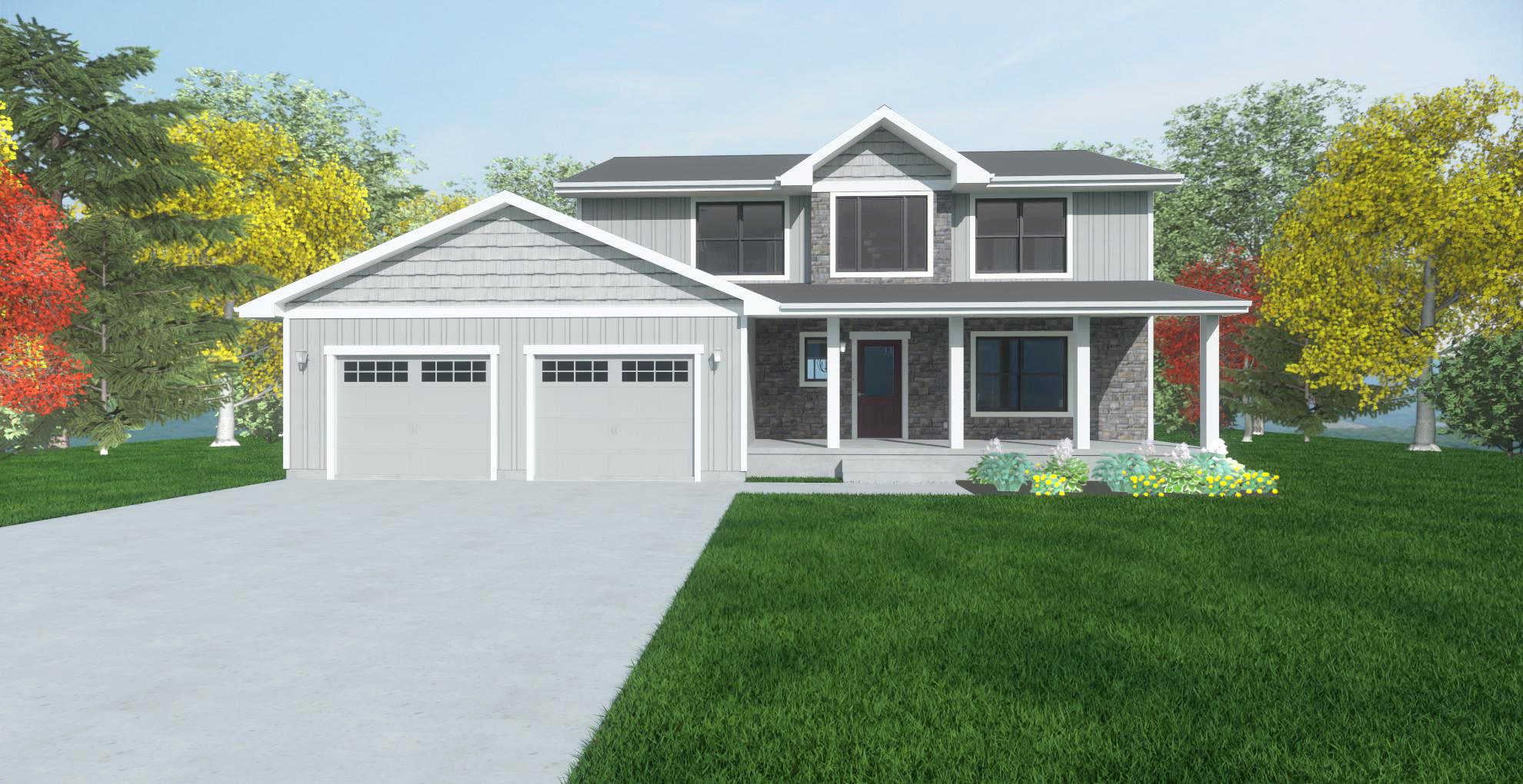 The Nantucket has a traditional design with open space for living at the back of the home. The rear living room opens to a den area, which could be used as a formal living room, dining room, or an office. The garage is also oversized for plenty of space.