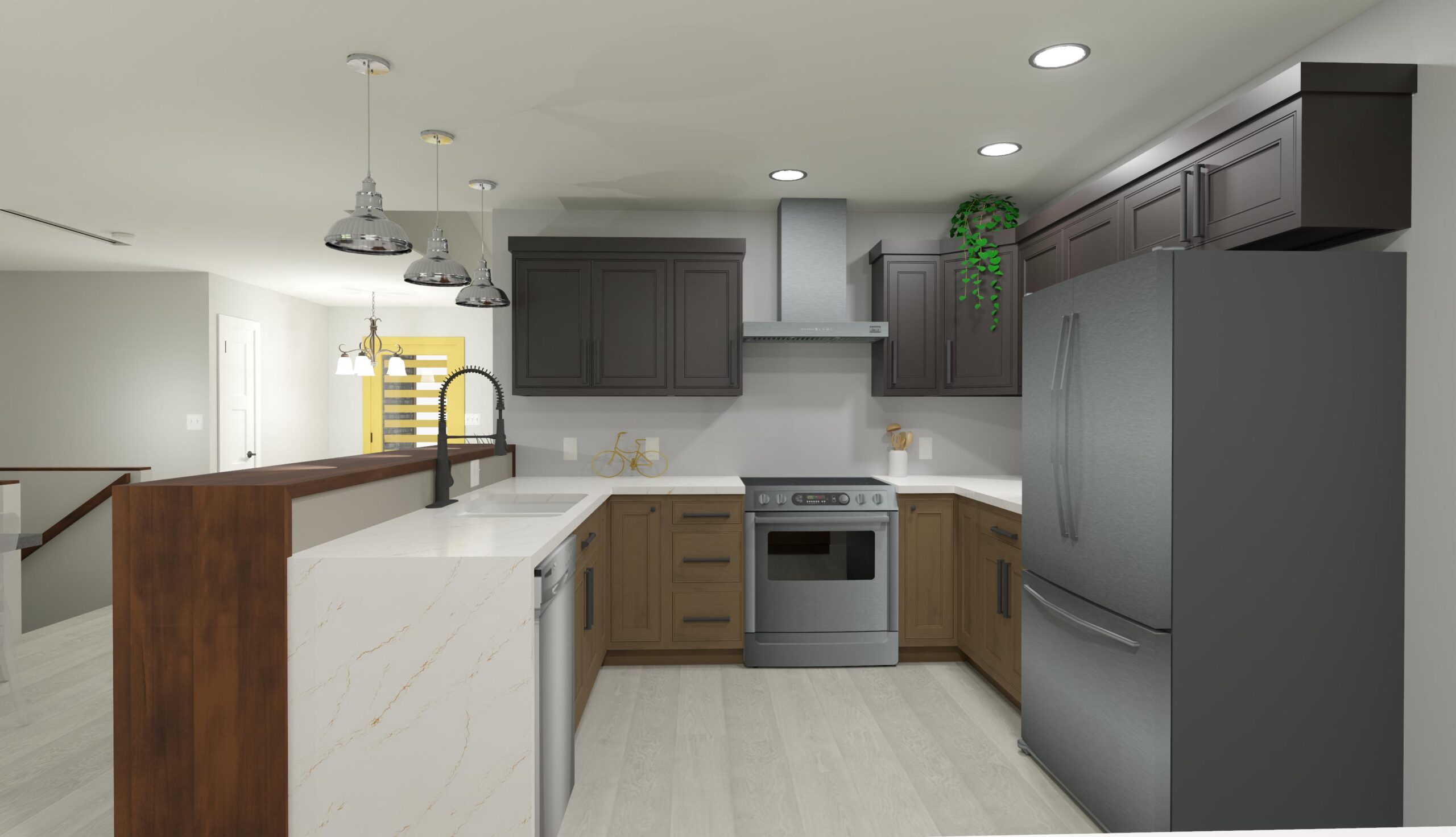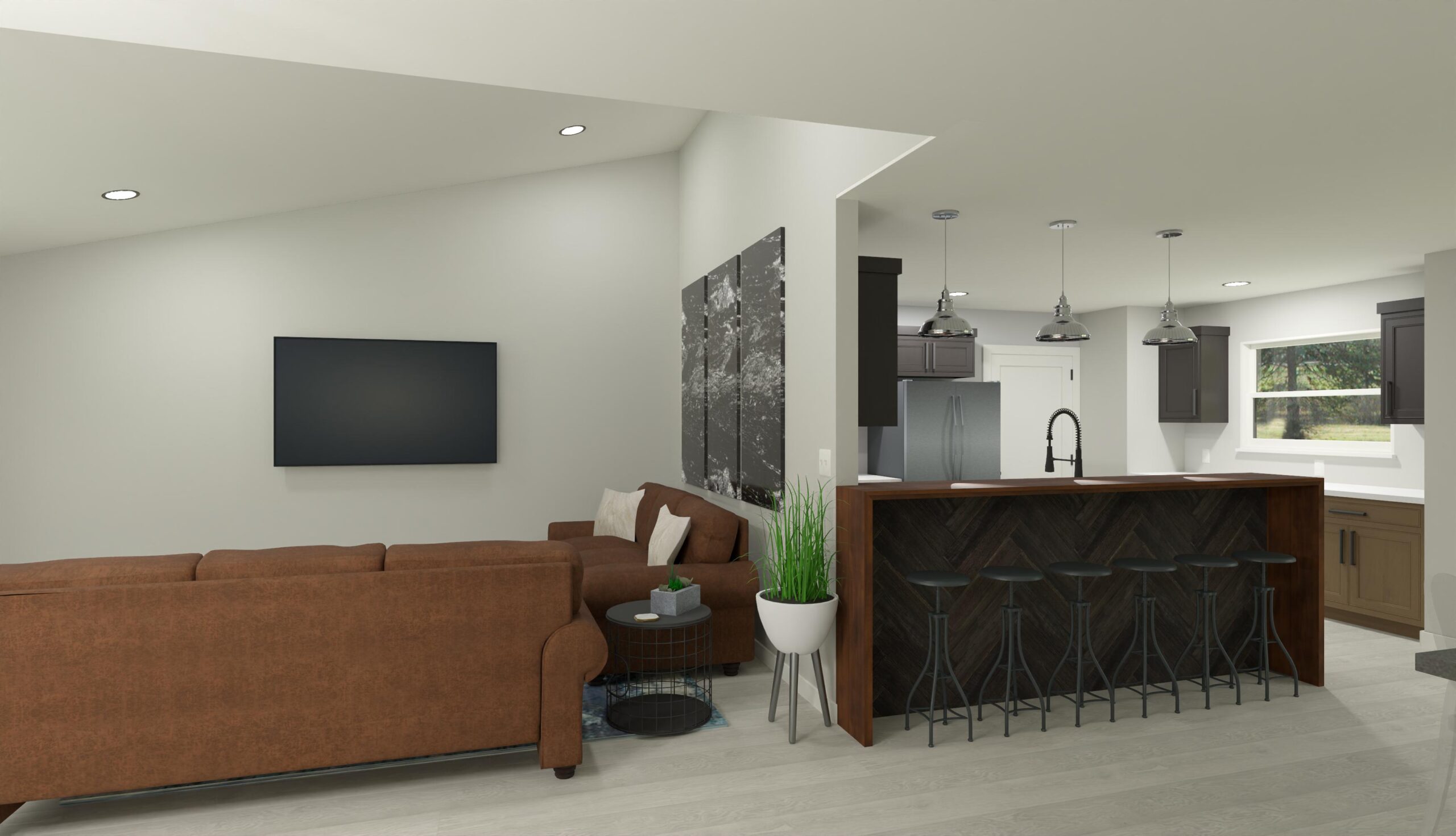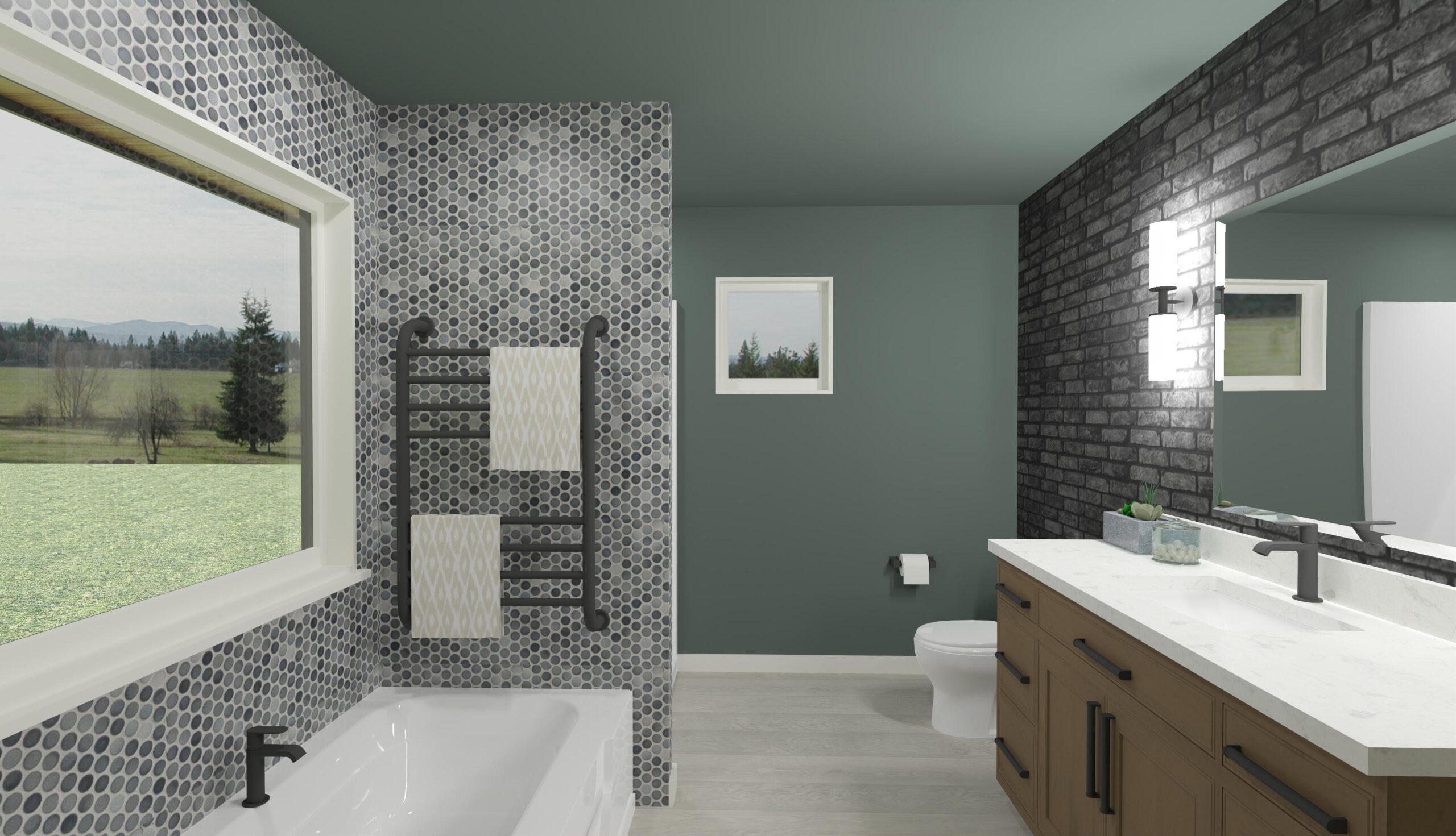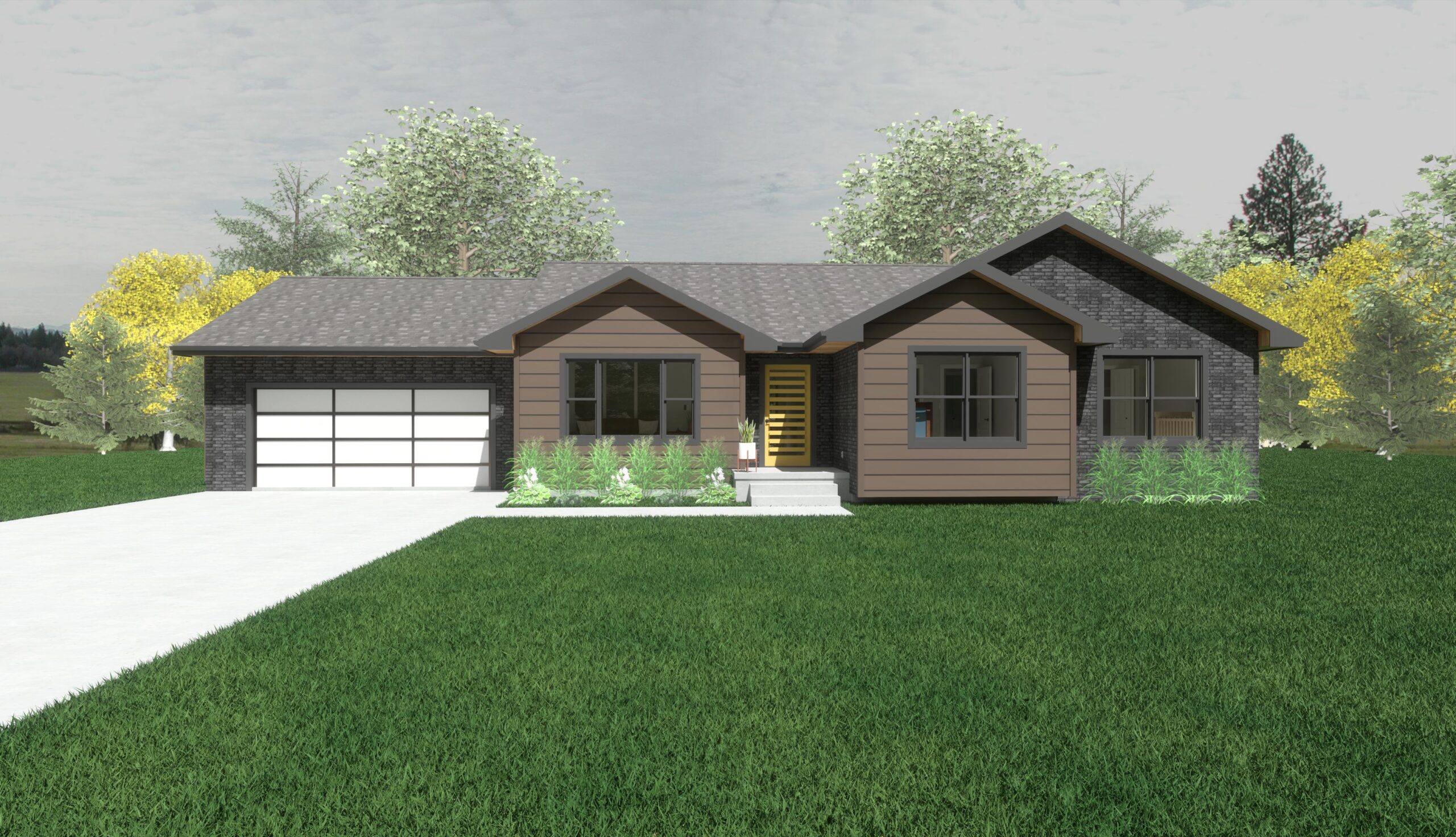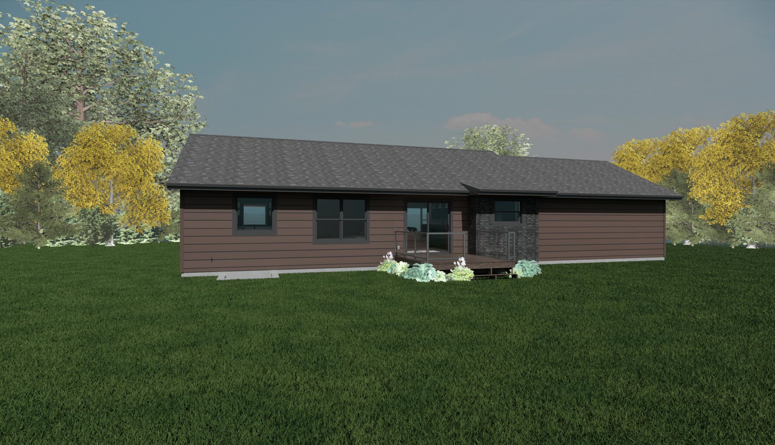 The Vermont plan includes three comfortably sized bedrooms along with a master bath and walk-in closet. The kitchen and dining area are large enough to comfortably seat the whole family. A bay window breakfast nook is added to the kitchen. Vaulted ceilings in the main living space create an open grand feeling. Window seats can be added to the kitchen bay window.